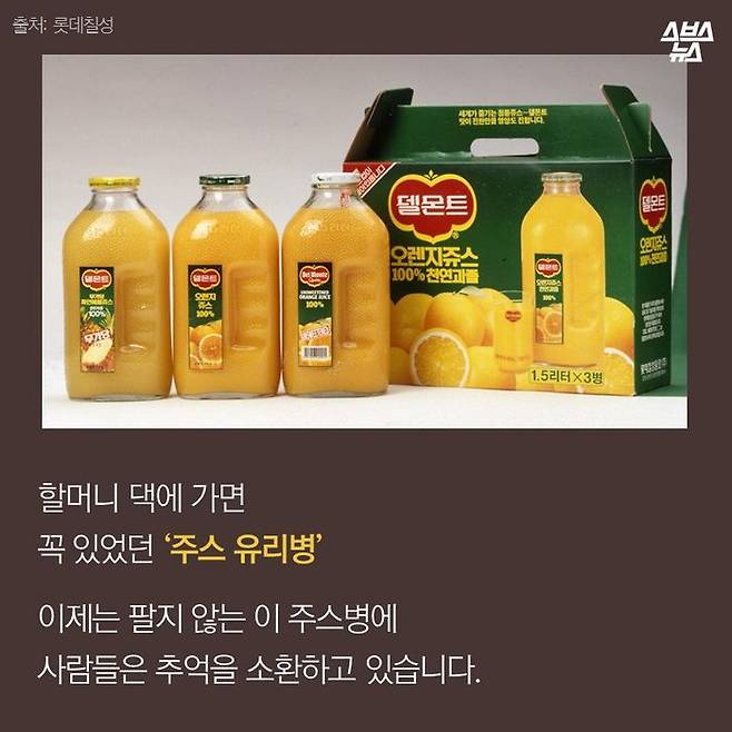D사에서 팔았던 유리병 오렌지 주스. 지금은 팔지 않는 이 주스에 사람들 관심이 쏠렸습니다. 이 주스 공병을 집에서 '보리차병'으로 썼던 추억 때문인데요. 이 병은 왜 인기를 얻었던 걸까요? 왜 단종됐을까요? 주스 병의 추억을 짚어봤습니다.