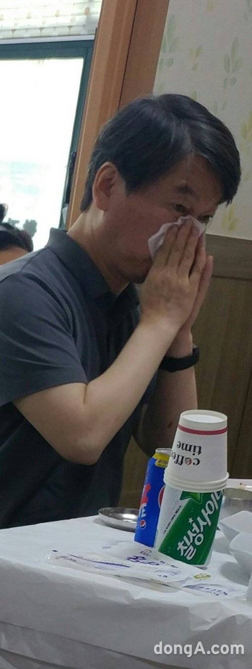 한 누리꾼은 10일 '엠엘비파크'에 '안철수예요'라는 글과 함께 한 식당에서 코를 풀고 있는 듯한 안 전 대표의 사진을 게재했다.