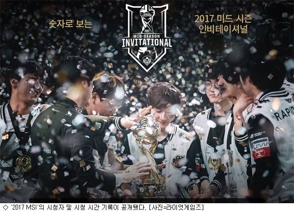 라이엇게임즈(한국대표 이승현)는 '2017 MSI'의 시청자 및 시청 시간 기록을 11일 발표했다.