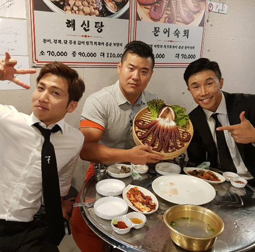 공개된 사진에는 흐뭇한 미소로 카메라를 바라보는 유세윤·미키광수·이종훈 세 사람의 모습이 담겼다. 유세윤은 손가락으로 V자를 그리며 깜찍한 표정을 짓고 있다. 미키광수는 손에 낙지를 들고 비장한 표정을 짓고 있다. 이종훈은 미키광수가 든 낙지를 손으로 가리키며 익살스러운 표정을 짓고 있어 눈길을 끈다.
