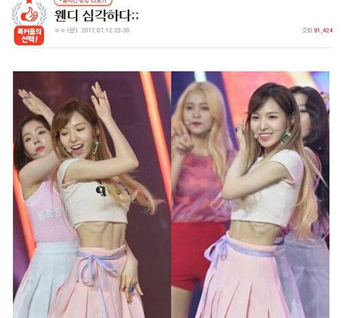 지난 12일 한 온라인 커뮤니티에는 '웬디 심각하다'는 제목의 글이 올라왔습니다.
