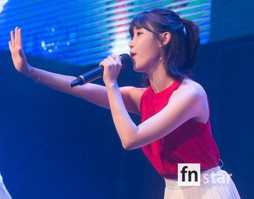 가수 아이유가 14일 오후 서울 서초구 넥슨 아레나에 '서든어택 2017 챔피언스리그' 개막전에 참석해 축하무대를 선보이고 있다.