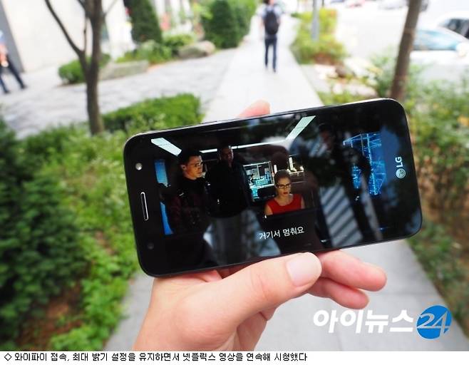 X500을 직접 테스트하기 위해 오전 7시 집을 나서면서부터 메인으로 쓰고 있던 스마트폰 테더링으로 와이파이에 접속했다. 밝기는 최대로 올렸다. 넷플릭스에 접속해 평소 시청하던 애로우를 1편부터 감상하기 시작했다. 물론 일을 해야 해 볼 수는 없었지만 점심시간 때까지 옆에 두고 간혹 살폈다.