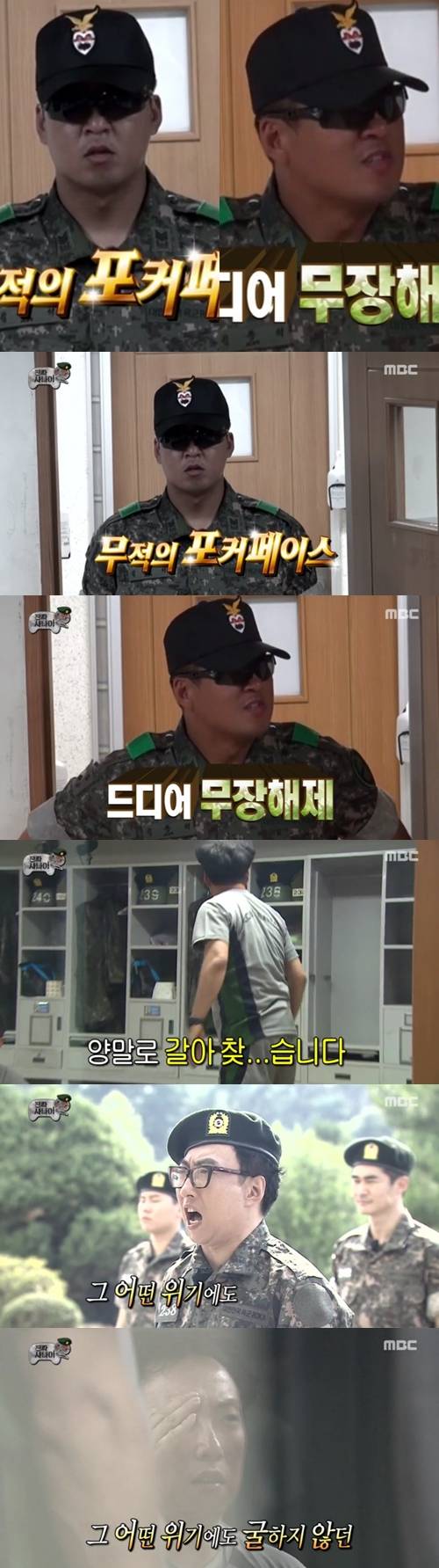 그동안 박명수의 여러 차례 말 실수에도 포커페이스를 유지하던 교관의 첫 실소에 멤버들은 웃음을 참지 못했다.