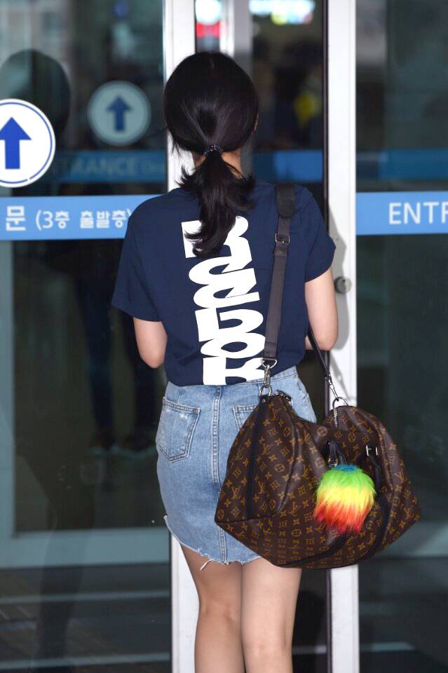 이날 해맑은 미소로 공항에 등장한 소미는 네이비 컬러 티셔츠에 청치마를 매치해 상큼한 여름 스타일링을 완성했다. 여기에 코트화 스니커즈로 포인트를 줘 감각적인 스타일을 뽐냈다.