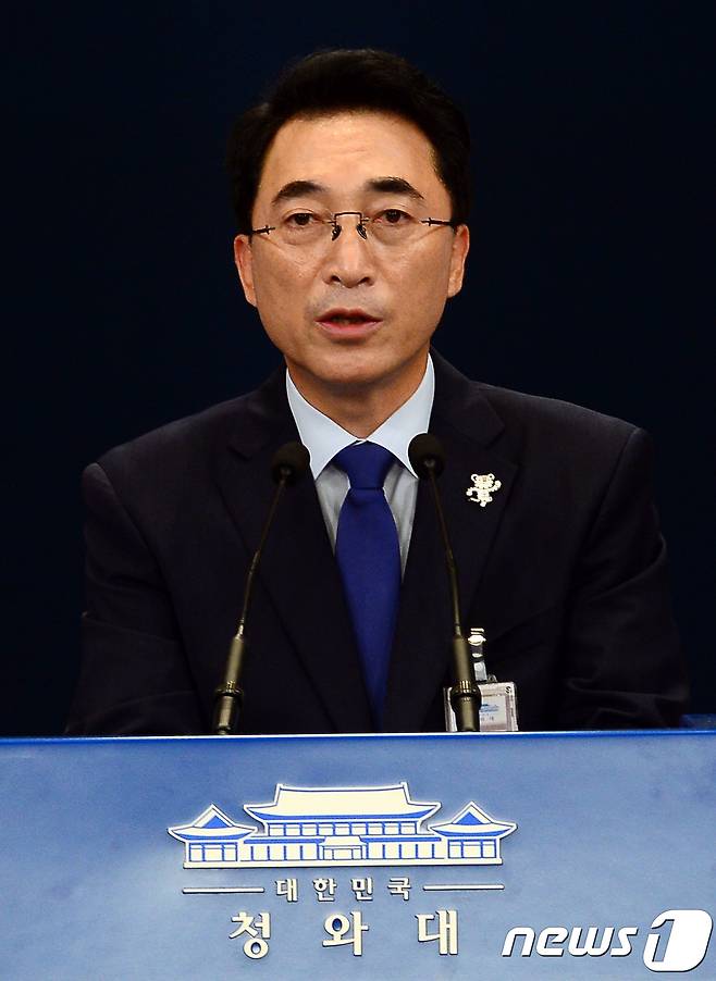 (서울=뉴스1) 이광호 기자 = 박수현 청와대 대변인이 20일 오후 청와대 춘추관에서 금융위원회 부위원장 인사발표와 수석보좌관회의 결과 및 지난 정부 문건 관련 브리핑을 하고 있다.