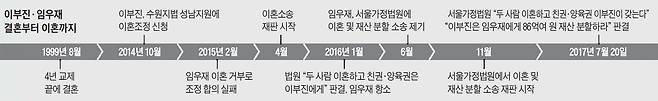 법원은 자녀의 친권자이자 양육자로도 이 사장을 지정했다. 양육자가 아닌 부모가 자녀를 만날 수 있는 면접교섭권은 매달 한 차례로 결정했다. 임 전 고문은 공동 친권과 월 2회 자녀와의 만남을 요구했다. 1999년 결혼한 이들은 아들 1명을 두고 있다. 이 사장 측 법률대리인인 법무법인 세종 윤재윤 변호사는 "현명한 판결을 해 주셔서 감사하다"고 말했다. 이번 재판은 평사원 출신 남편과 재벌가 맏딸 아내의 이혼이란 점에서 관심을 모았다.