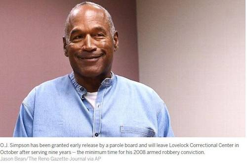 전처 살해 혐의로 기소돼 무죄 평결을 받았다가 다시 강도와 납치 혐의로 유죄 선고를 받고 9년간 복역해 온 미국 풋볼 스타 O.J. 심슨(70)이 곧 자유의 몸이 된다.