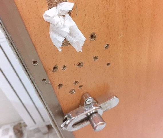 이들 구멍은 왜 생긴 것일까. 화장실 칸막이업체 관계자는 “경첩이나 잠금쇠, 휴지걸이 등의 모양과 크기가 달라 뗐다 붙였다 하는 과정에서 구멍이 생기기 마련”이라며 “보통 부품 업체는 해당 부품만 납품하고 시공은 설비에서 따로 해야 하는데 구멍을 석고 등으로 메우지 않아 생긴 문제 같다”고 말했다.