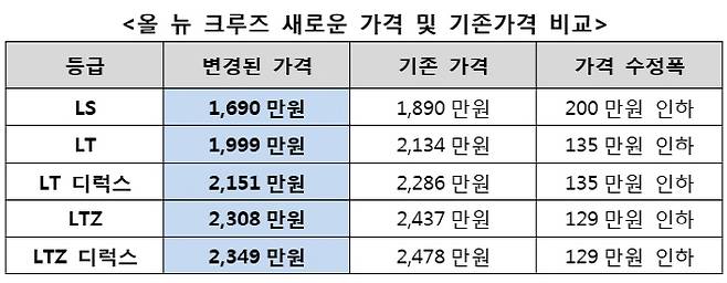 물론 한국지엠은 나름대로 최선을 다한 가격이었다. 실제 북미 시장에서 엔트리 모델도 판매되는 올 뉴 크루즈 L 트림이 국내 LS 트림보다도 비싼 가격표를 달고 있었다.