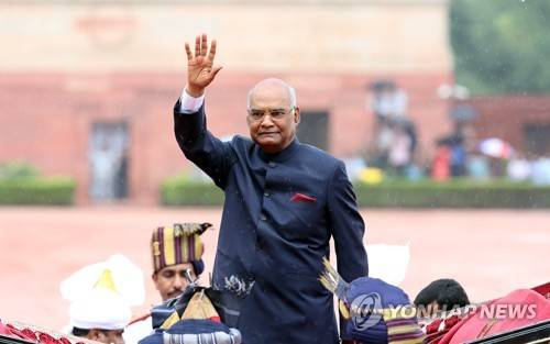 epa06108277 India's new President Ram Nath Kovind greets well-wishers as he arrives in the royal traditional horse-drawn carriages or Buggy during his welcome ceremony at Indian president house in New Delhi, India, 25 July 2017, after his swearing-in ceremony at parliament house. Ram Nath Kovind become the 14th President of India after his win over the opposition parties' candidate Meira Kumar. EPA/HARISH TYAGI