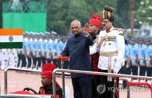epa06108278 India's new President Ram Nath Kovind waves as he inspects the guard of honor during his welcome ceremony at Indian president house in New Delhi, India, 25 July 2017, after his swearing-in ceremony at parliament house. Ram Nath Kovind become the 14th President of India after his win over the opposition parties' candidate Meira Kumar. EPA/HARISH TYAGI