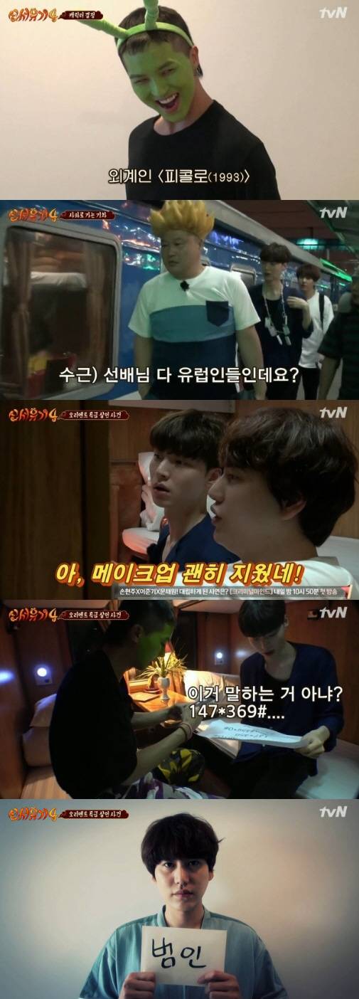각 캐릭터로 분장한 멤버들은 사파로 향하는 야간열차에 탑승했다. 사파로 향하는 길에 멤버들은 나PD로부터 이 기차 안에서 신묘한이 도깨비 칼에 찔려 죽었다는 말을 듣게 됐다. 사건과 관련이 있는 4개의 객실에는 단서가 숨겨져 있고, 범인은 멤버들 중에 있었다. 여섯 명 중에 한 명은 미리 제작진의 지령을 받고 거짓말을 하고 있으며, 숨어있는 범인을 30분 안에 찾아야 하는 것. 멤버들은 추리를 할 수 있다는 생각에 들떴다. 멤버들은 각 객실을 찾아 증거를 수집했다.