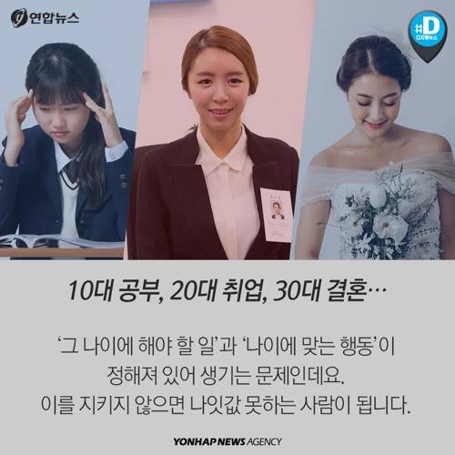 '그 나이에 해야 할 일'과 '나이에 맞는 행동'이 정해져 있어 생기는 문제인데요. 이를 지키지 않으면 나잇값 못하는 사람이 됩니다.