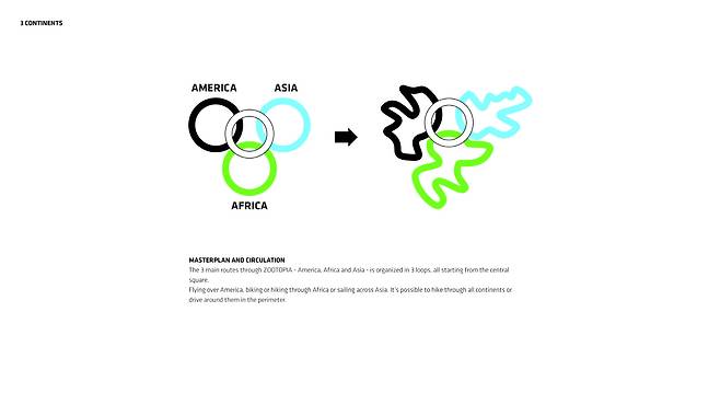 동물원에 적용된 건축 개념 역시 가급적 대륙적 특성에 맞는 건물을 디자인하고 가능한 한도 내에서 건물을 통합하고 숨길 것을 제안했다. 각각의 동물들에게는 원래 환경의 특성을 부여하고 이들을 위해 맞춤형으로 제작된 집을 짓고자 한다. 코끼리 집은 작은 언덕처럼 보일 수 있고 곰의 집은 목재 더미 사이의 오두막집, 사바나의 사파리는 분화구에 있는 작은 별장일 수 있다.