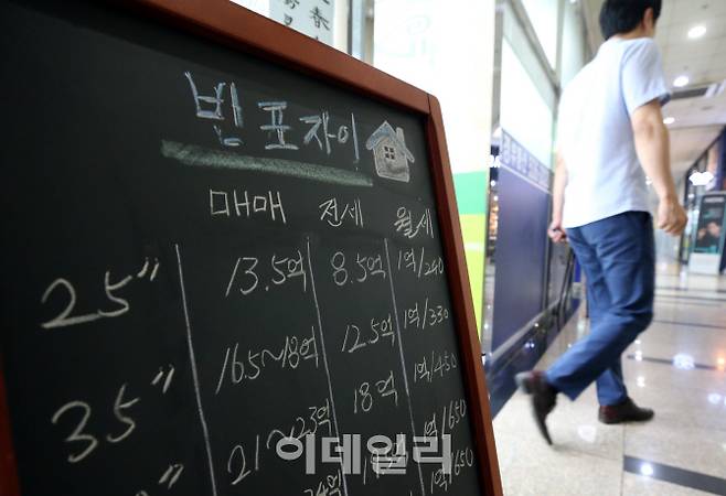 [이데일리 방인권 기자] 정부가 8월 말 가계부채 대책 전 별도의 부동산 대책을 발표할 것으로 알려진 31일 서울 서초구 반포동의 한 공인중개사에 시세표가 놓여 있다.