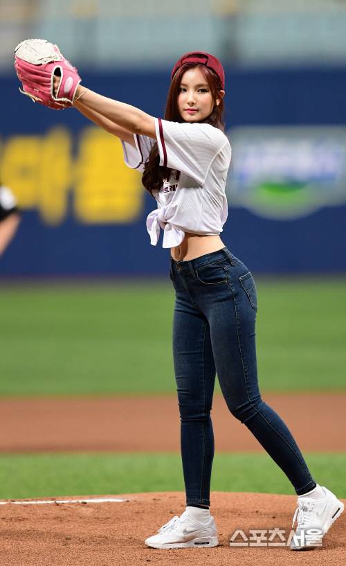 ▲ 글래머 몸매를 맘껏 뽐내며 마운드에 오른 엘리스 소희