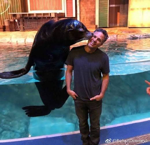 사진에서 로버트 다우니 주니어는 마크 러팔로의 어깨에 팔을 올리고 볼에 뽀뽀를 하려는 포즈를 취해 끈끈한 우정을 과시했다. 마크 러팔로는 선글라스를 낀 채 옅은 미소를 짓고 있다. 함께 공개한 또 다른 사진에는 마크 러팔로가 바다사자에게 볼키스를 받는 모습이 담겨 눈길을 끌었다.