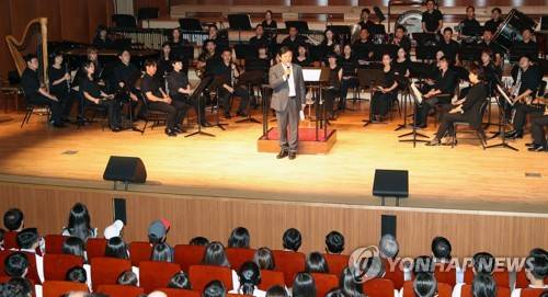 (서귀포=연합뉴스) 8일 오후 제주 서귀포 예술의전당에서 열린 제22회 제주국제관악제 개막공연에서 원희룡 제주지사가 환영사를 하고 있다. 2017.8.8 [제주국제관악제 조직위=연합뉴스]