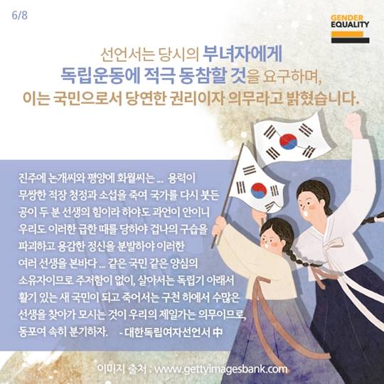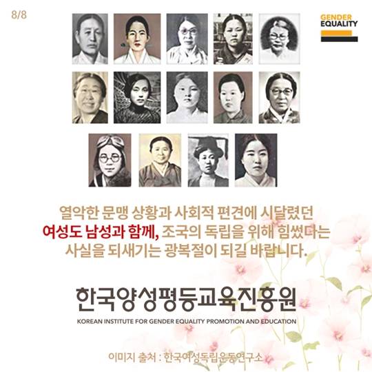 열악한 문맹 상황과 사회적 편견에 시달렸던 여성도 남성과 함께, 조국의 독립을 위해 힘썼다는 사실을 되새기는 광복절이 되길 바랍니다.
