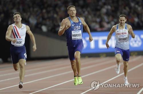 Norway's Martin Roe, United States' Trey Hardee and Britain's Ashley Bryant race in a Decathlon 400m heat during the World Athletics Championships in London Friday, Aug. 11, 2017.. (AP Photo/David J. Phillip)