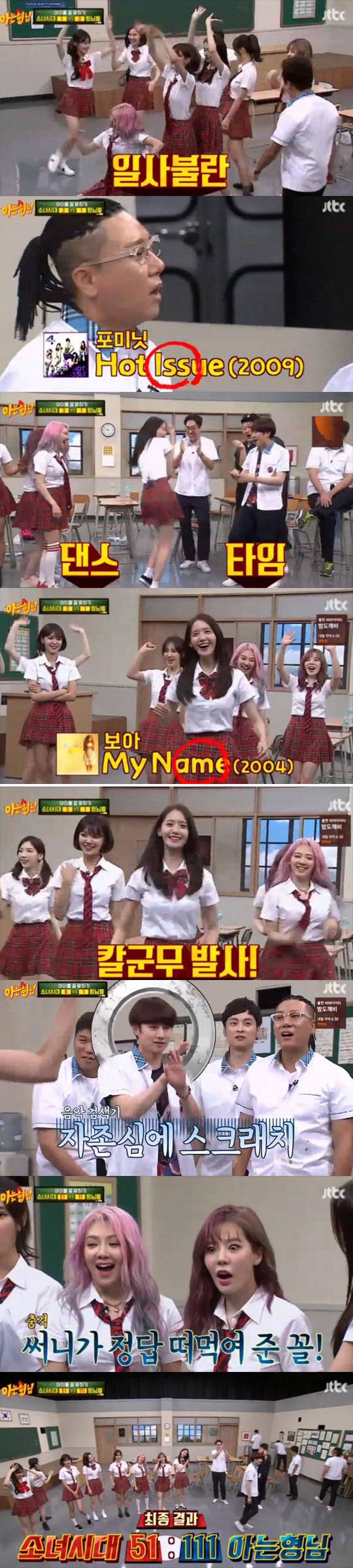'아는형님'이 고전 끝에 소녀시대에 노래 맞추기에서 대역전승을 거뒀다.
