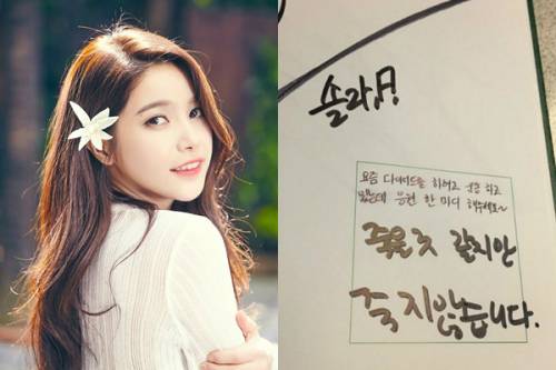 솔라는 팬사인회에서 "요즘 다이어트를 하려고 운동하고 있는데 응원 한 마디 해주세요"라는 글이 적힌 종이에 답글을 남겼다.