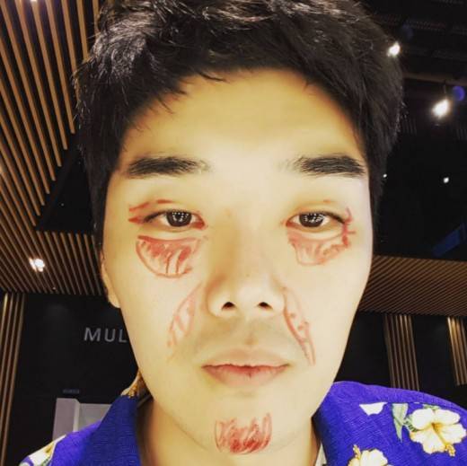 공개된 사진에는 얼굴에 낙서가 된 권혁수의 모습이 담겨있다.