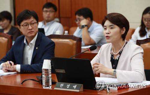 (서울=연합뉴스) 홍해인 기자 = 23일 오후 국회 환경노동위원회 전체회의 결산보고에서 더불어민주당 간사인 한정애 의원이 발언하고 있다. 2017.8.23