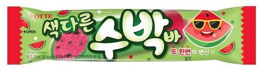 ‘색다른 수박바’는 과육 부분과 껍질 부분이 나눠져 있었던 이전 수박바 상품들과 달리 진짜 수박처럼 초록색 껍질 안에 빨간 과육 부분이 들어 있는 것이 특징이다. 늘 따로 먹어야 했던 두 가지 맛을 한 입에 즐길 수 있도록 한 것이다.