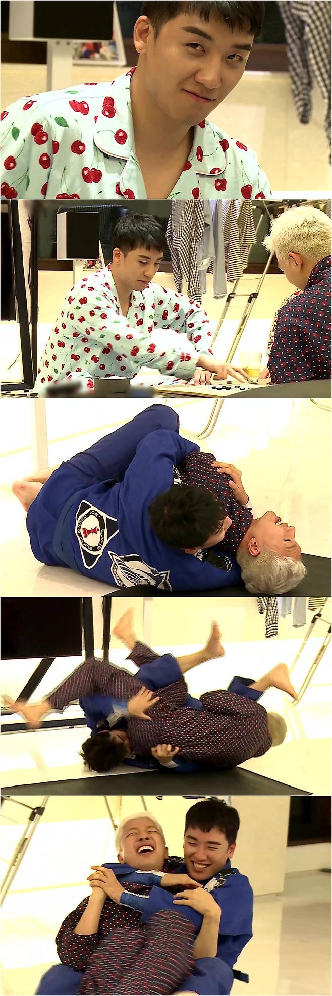 대성은 "그건 포옹이잖아", "약간 스킨십 같은데?"라며 도발을 시작한다. 이에 승리가 공격에 더 집중하자 대성은 "이 악물은 거 봐!"라며 깐족거린다.