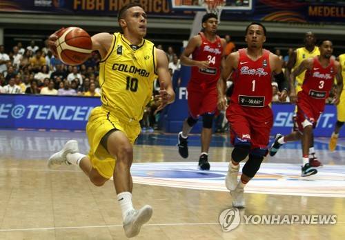 epa06165716 Colombia's Hansel Atencia (L) controls the ball during a match of the Americup 2017 between Colombia and Puerto Rico in Medellin, Colombia, 26 August 2017. EPA/LUIS EDUARDO NORIEGA A.