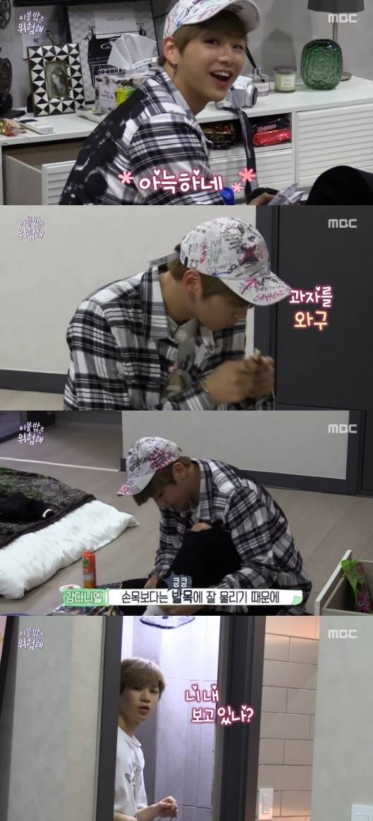 27일 방송된 파일럿 프로그램 MBC '이불 밖은 위험해' 1회에서는 강다니엘이 숙소에 도착한 모습이 그려졌다.