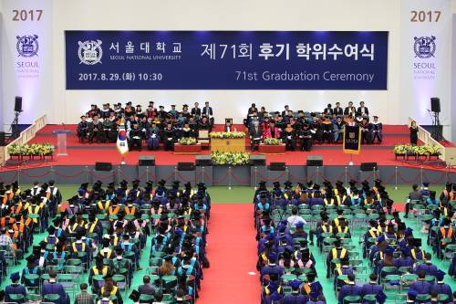 | 29일 오전 서울 관악구 서울대학교 관악캠퍼스 종합체육관에서 제71회 후기 학위수여식이 열리고 있다. 서울대 제공 |