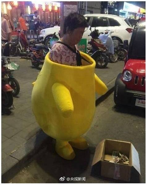 가족의 생계를 꾸리기 위해 인형탈을 쓰고 거리를 누비는 중국의 70대 할머니의 사연이 안타까움을 자아내고 있다.