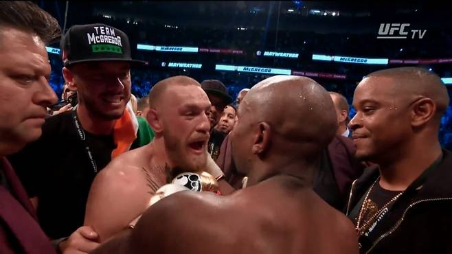 복싱과 종합격투기 최고 스타 간의 대결로 역사에 남을 메이웨더 VS 맥그리거 전이 끝난 후, 둘은 서로를 한껏 인정하는 모습입니다. 경기 전 월드 투어에서 랩배틀을 벌이듯 트래쉬 토크를 주고받던 모습은 온 데 간 데 없고, 이제 둘도 없는 친구같이 보이네요. 추정치긴 하지만 메이웨더는 3천억 이상, 맥그리거는 천억 이상의 거액을 벌게 된 데다 PPV 판매량도 메이웨더-파키아오 전의 기록을 뛰어넘었다는 얘기가 나오고, 둘 중 크게 다친 사람도 없으니 서로를 미워할 이유가 없겠죠.