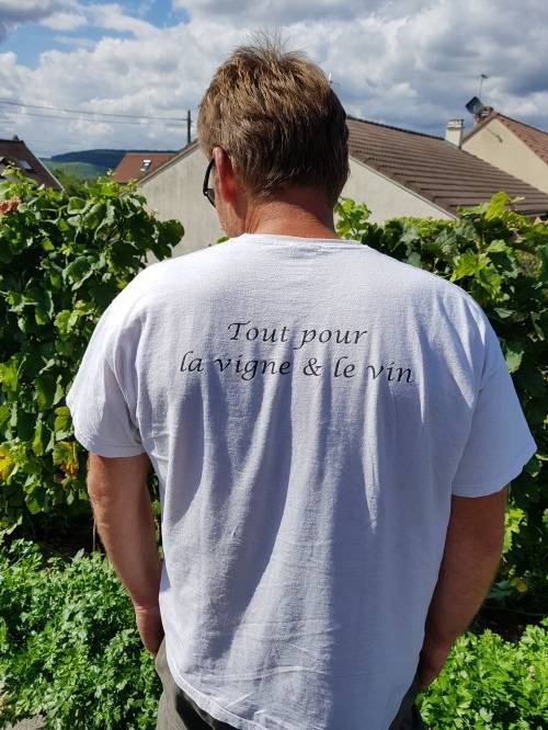 | 포도밭과 와인을 위한 모든 것이라고 쓰인 뱅썽 샬로의 티셔츠 |