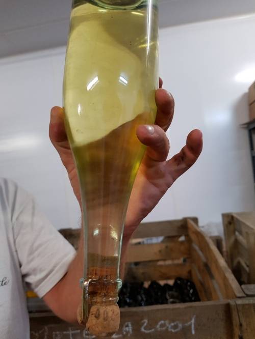 뀌베 엘리야(Elia)는 기본 60개월 병숙성을 하는데 1998 빈티지는 무려 19년, 2001은 16년이나 병숙성을 거친 뒤에서 올해 데고르즈망으로 했으니 뱅썽 샬로가 얼마나 까다롭게 샴페인을 세상에 선보이는 알수 있네요. 효모찌꺼기를 빼내고 손실된 와인과 당을 보충하는 도사주는 3g만 하기 때문에 아주 드라이한 샴페인이 탄생됩니다.