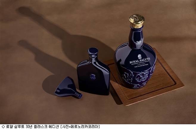 로얄 살루트 30년 위스키를 담은 포셀린 바틀과 플라스크, 퍼넬 아이템들은 깊은 의미와 정교함을 담았으며 천연 목재 오크통의 아름다움과 깊이를 표현한 우드 트레이를 함께 구성했다. '로얄 살루트 30년 플라스크 에디션'은 이달 6일부터 갤러리아 백화점 명품관, 타임월드, 센터시티에서 12개 한정 수량으로 단독 판매될 예정이다.