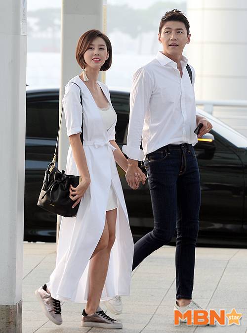 [MBN스타=(인천공항)천정환 기자] 배우 지소연 송재희 부부가 8일 오전 인천국제공항을 통해 베트남으로 신혼여행을 떠나고 있다.
