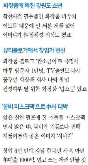 6년 전 강원 원주시의 작은 사무실에서 출발해 서울 강남 한복판에 사옥을 마련한 이 회사만큼이나 창업자 김한균 대표의 삶도 극적이다. 어렸을 때부터 화장품이 좋아 화장품 매장 아르바이트를 하고, ‘완소균이’란 이름으로 인기 블로그를 운영했던 그는 이제 연매출 1000억원대 회사를 운영하는 어엿한 사장이 됐다.