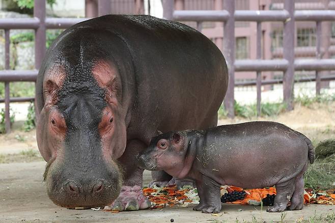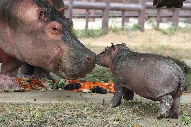 - [사진]엄마랑 뽀뽀하는 아기하마 옥자