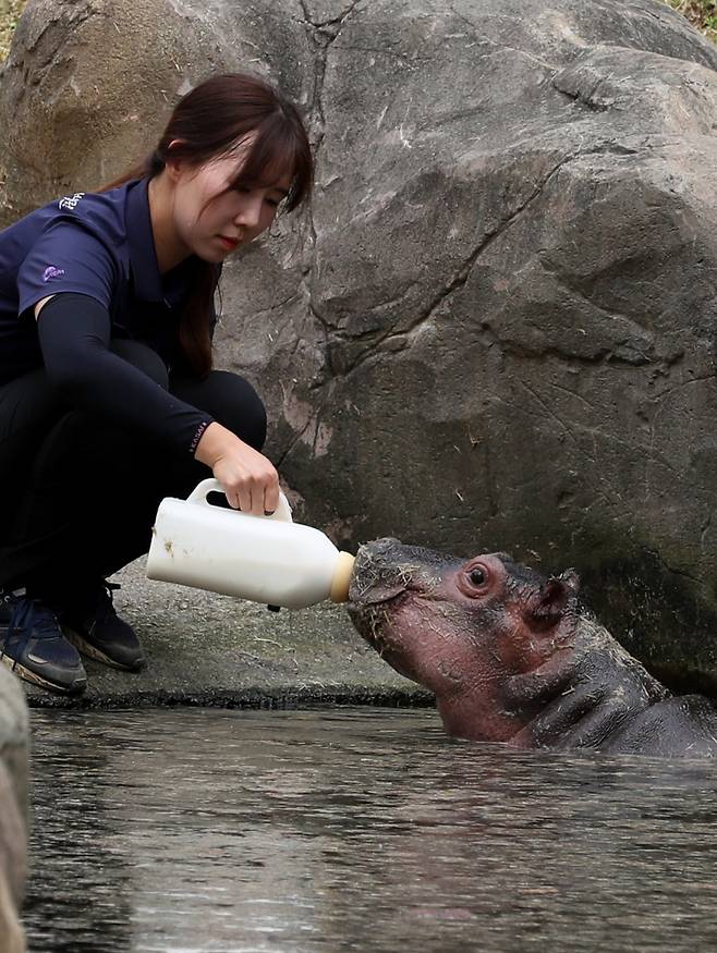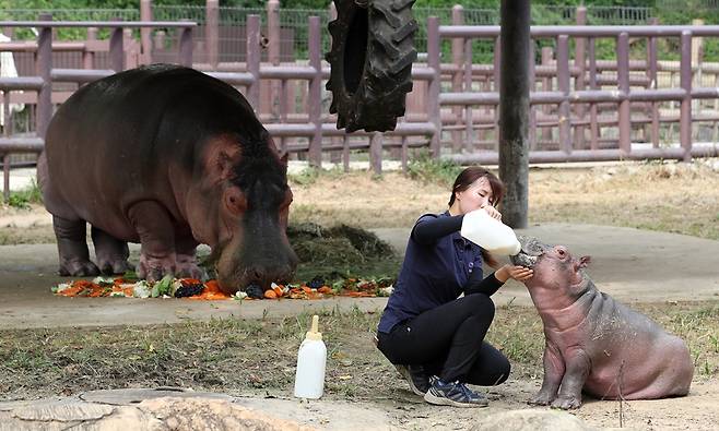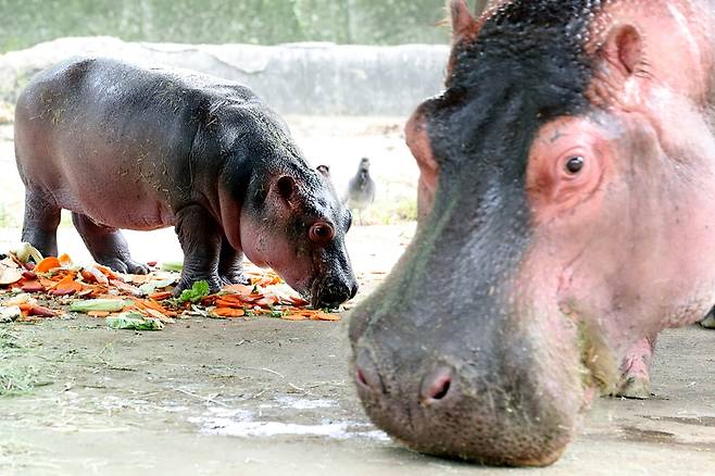 옥자는 경기 과천 서울대공원에서 9년만에 태어난 아기 하마로 이번주 100일을 맞았습니다.