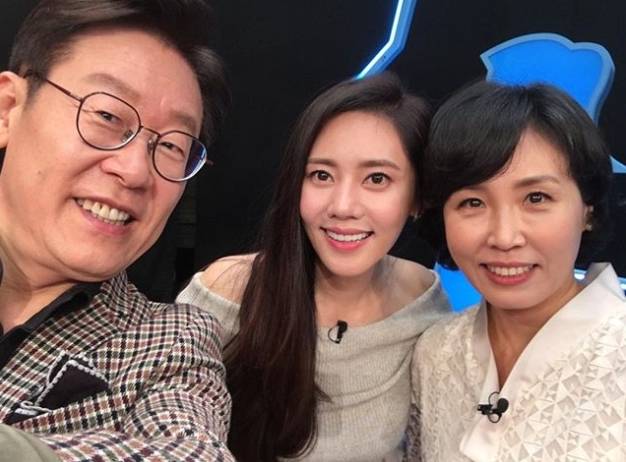 사진에는 촬영장에서 카메라를 바라보며 환하게 웃고 있는 이재명 김혜경 부부와 추자현의 모습이 담겨있다. 세 사람의 화기애애한 분위기가 인상적이다.