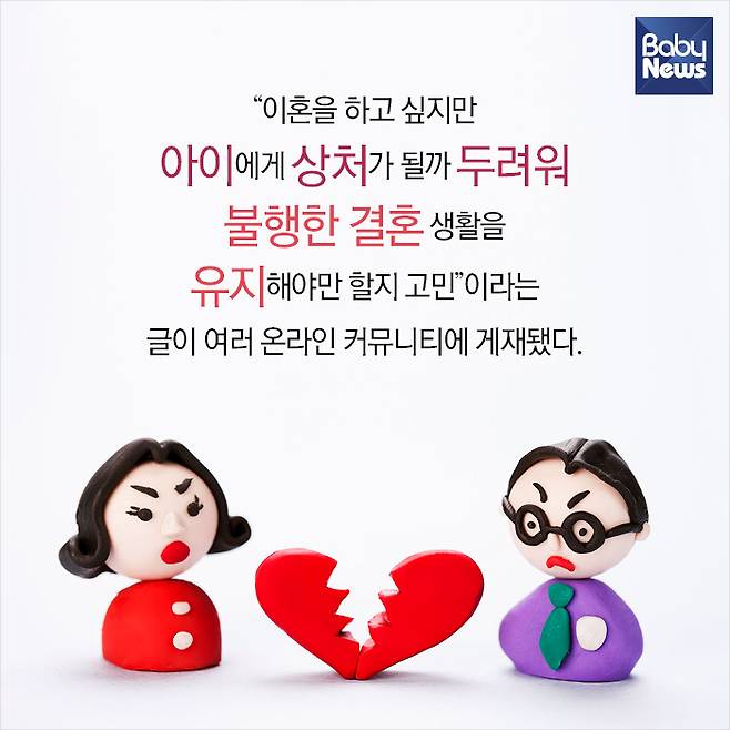 3. “이혼을 하고 싶지만 아이에게 상처가 될까 두려워 불행한 결혼 생활을 유지해야만 할지 고민”이라는 글이 여러 온라인 커뮤니티에 게재됐다.
