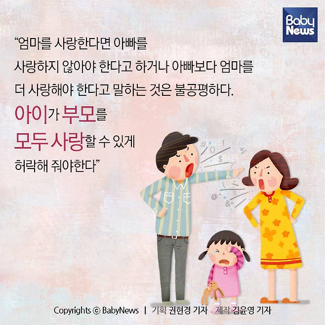 10. “엄마를 사랑한다면 아빠를 사랑하지 않아야 한다고 하거나 아빠보다 엄마를 더 사랑해야 한다고 말하는 것은 불공평하다. 아이가 부모를 모두 사랑할 수 있게 허락해 줘야 한다.”