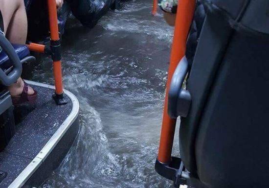 부산 침수 상황이라면서 가장 많이 퍼지는 사진은 버스에 들어찬 모습이다.