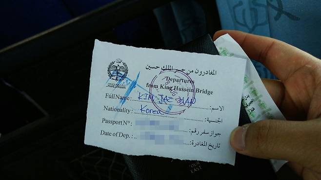 | ▲ 알렌비-킹 후세인 국경을 통한 이스라엘 입국 알렌비-킹 후세인 국경을 통한 이스라엘 입국시 요르단에서는 출국 기록을 여행자의 여권에 남기지 않는다. 출국카드에 출국세 및 출국 내역을 도장 찍고 요르단 국경을 넘을 ? 이 카드도 회수한다. |