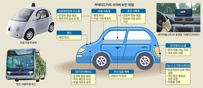 커넥티드카 시장은 아직 초기인 만큼 기반기술 확보 경쟁에서 우위를 점하는 한편 보안 및 윤리 문제 등도 풀어야 한다. 장우석 현대경제연구원 연구위원은 “아직 어느 기업도 독보적인 기술을 보유하지 못한 단계로 국내 기업들이 커넥티드카 기반 기술을 잘 갖춰야 세계 시장에서 도태되지 않을 것”이라고 말했다.