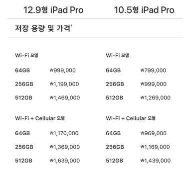 애플은 국내에서 아이패드 프로의 고용량 버전의 가격을 적게는 8만원, 많게는 11만원까지 인상했다. 와이파이 모델과 셀룰러 모델이 모두 256GB는 8만원, 512GB 모델은 11만원 올랐다. 64GB 모델 가격은 인상되지 않았다.